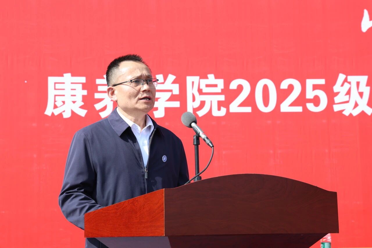 党委副书记、院长王轩发表讲话,从“立德、立志、勤学、力行”四个维度为新生指明方向。立德是立身之本,要以医德、品德涵养人生底色;立志需锚定人生长标,以优秀校友赵雪芳、王学诗、贺星龙为榜样,在医学领域深耕细作;勤学是大学生成长的必由之路,要在教室学理论、在实践学技能,让知识转化为服务健康事业的能力;力行则要践行“知行合一”,以王阳明的“知行之辨”为鉴,将理想信念转化为实际行动。他寄语新生,要在历史征途中明方向,在求学征途中强本领,在成长征途中塑人格,在时代征途中显担当,于卫健菁菁岁月里书写精彩的人生篇章。