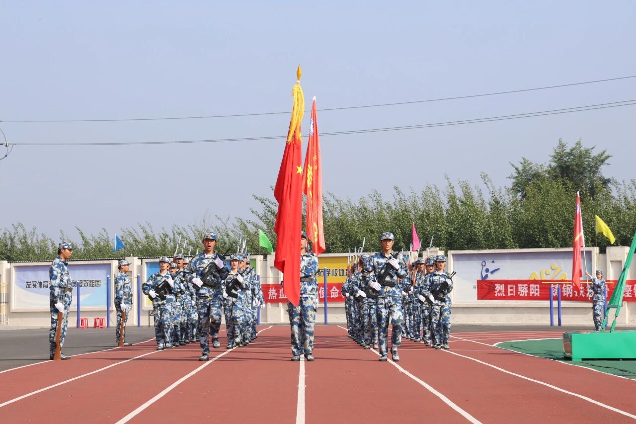 在庄严的国歌声中,国旗冉冉升起,大会拉开帷幕。 伴着激昂的《分列式进行曲》奏响,仪仗队率先入场,他们身姿挺拔、步伐铿锵,以标准的动作、饱满的精神拉开军训汇演序幕。各连队方阵依次通过主席台,同学们眼神坚毅、口号震天,将数日军训的汗水与磨砺凝结成整齐划一的队列动作,充分展现卫健学子的纪律意识与团队精神。