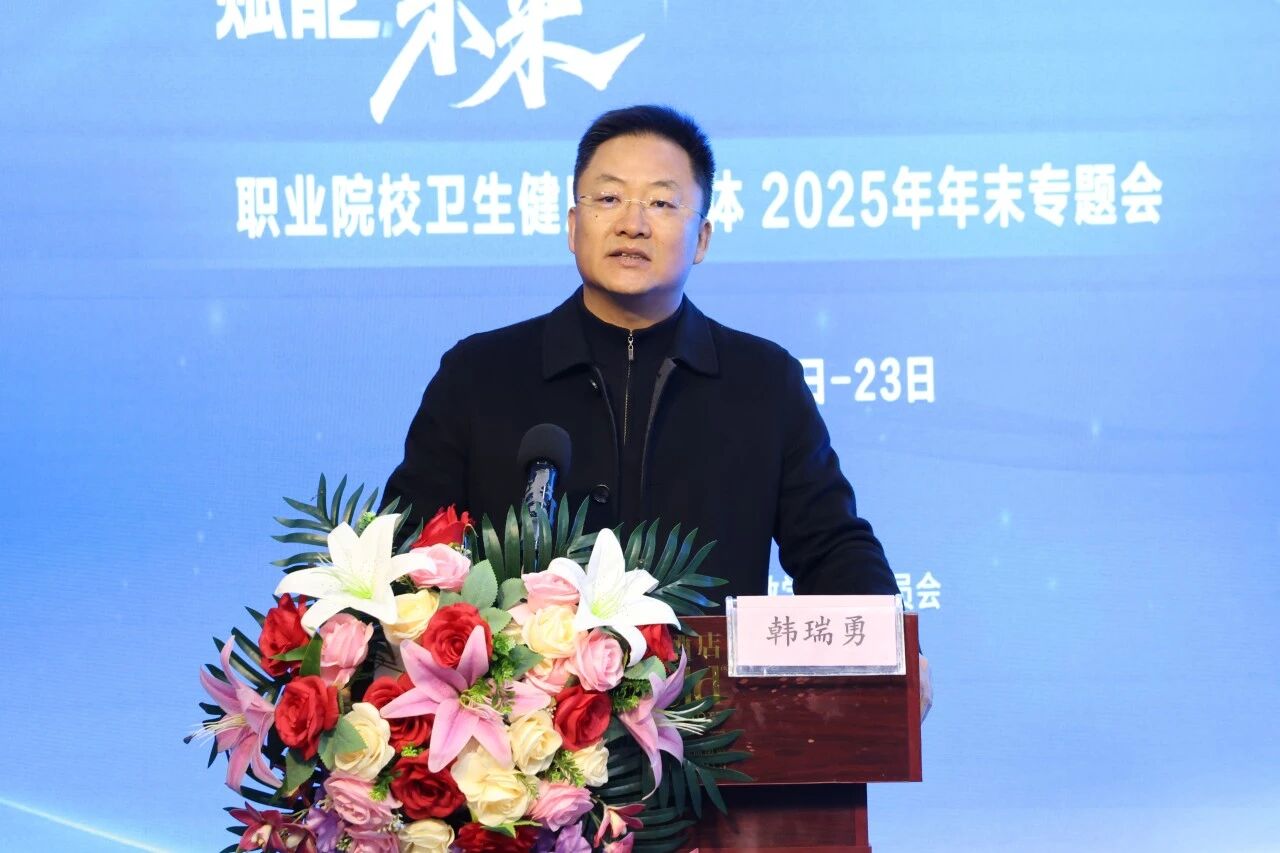 韩瑞勇代表山西省教育厅向长期深耕卫生健康职业教育一线的同仁致以崇高敬意,向关心支持我省职业教育事业发展的社会各界人士表示衷心感谢。他指出,本次会议的举办,既是贯彻落实党的二十届四中全会精神的具体行动,也是推动卫生健康职业教育高质量发展的一个重要举措。近年来,山西加快构建职普融通、产教融合的现代职业教育体系,学校布局、专业布局结构不断优化;内涵建设、“五金”建设成效突出;产教融合持续深化,产教资源双向互动的良好局面形成;强化中职、专科、本科纵向贯通,学生成长、成才通道进一步拓宽。他强调,卫生健康职业教育不仅是培养技术技能人才的主阵地,更是贯通教育链、人才链与卫生健康产业链、创新链的关键纽带,其发展成效深刻影响着千万百姓的健康获得感、幸福感、安全感。就卫生健康职业教育的发展,他提出要以“协同”为抓手,构建多元融合新生态;以“质量”为核心,打造人才培养新高地;以“需求”为导向,提升社会服务新效能,从而进一步强化卫生健康类职业院校办学质量与社会服务能力。