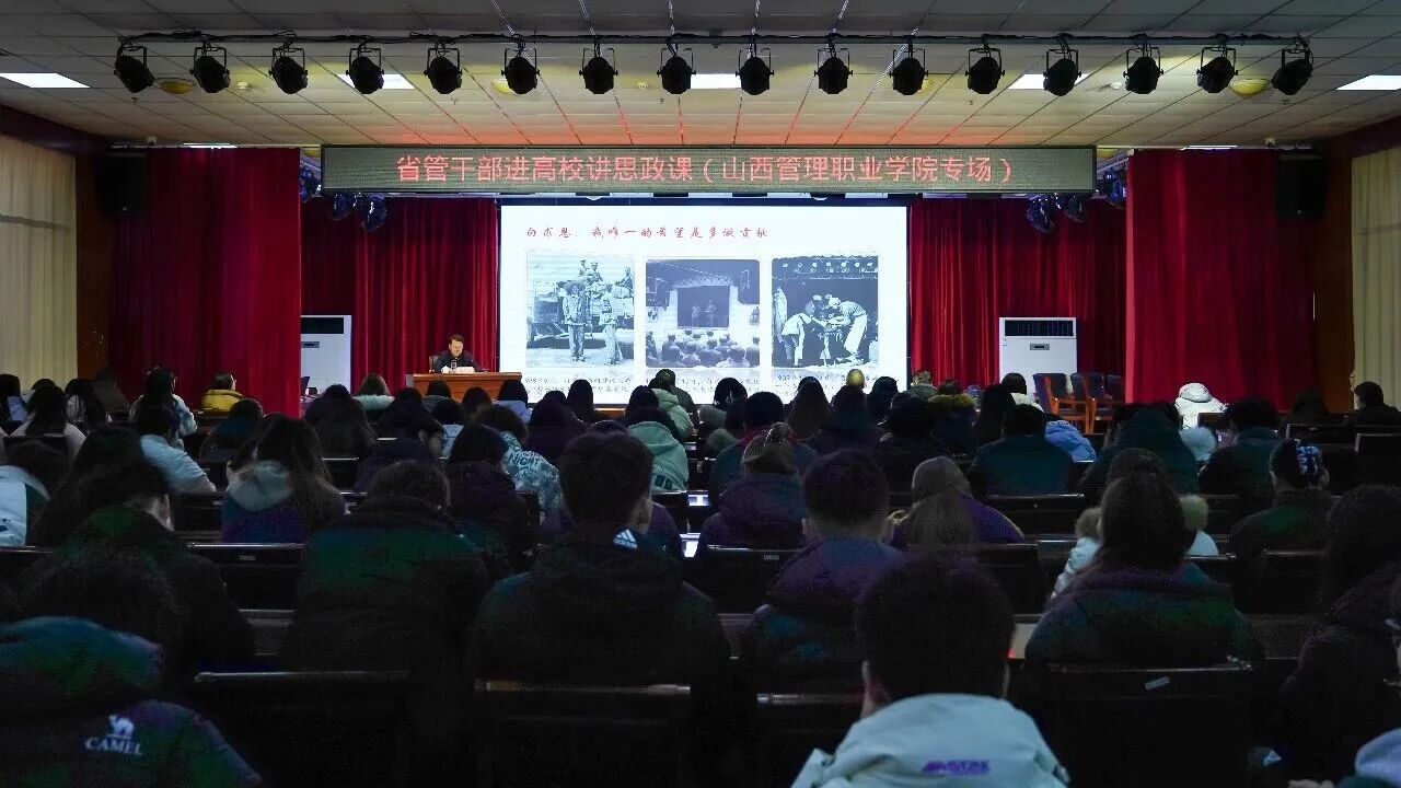 根据中共中央组织部、中共中央宣传部、教育部《关于进一步推动领导干部上讲台讲思政课的通知》和省委教育工委相关文件要求,12月17日,我院党委书记冀孝如赴山西管理职业学院,以《赓续抗战精神 砥砺青年担当 以青春之我绘就强国华章》为题,为全体思政教师及学生代表讲授思政课。