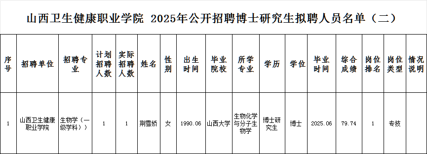 根据国家和我省事业单位公开招聘工作有关政策规定,现将我单位2025年度公开招聘博士研究生拟聘用事业单位工作人员予以公示。