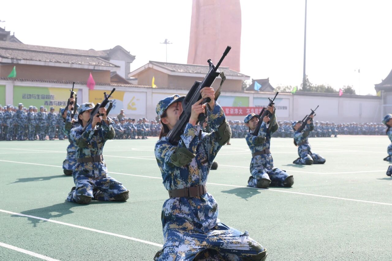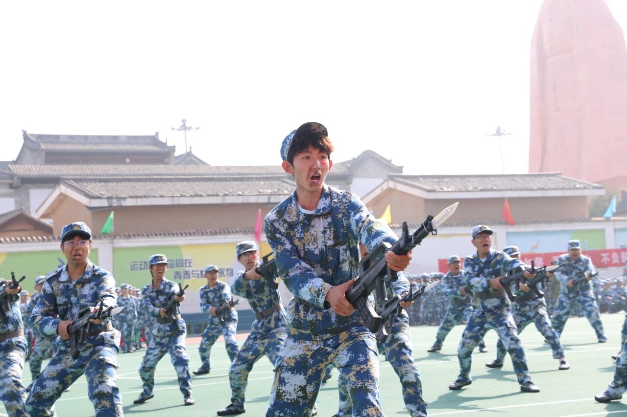 “三声三相”展示环节,新生们以“倒计时呼喊”“文明礼貌用语应答”“‘少年卫健说’口号齐喊”,将青春朝气与学院“厚德、博学、慎独、远志”的院训精神深度融合;花样队列变换间,红绿旗帜翻飞成青春的图腾,刚劲有力的擒敌拳表演,一招一式尽显力量与韧性,男生方阵的刺杀操动作凌厉、气势如虹,将果敢与坚毅展现得淋漓尽致;旗语方队的旗帜在阳光下猎猎作响,与战术队的“战场救援”实景演练形成鲜明呼应——烟雾弥漫中,身着白大褂的“医疗兵”迅速穿梭,为“受伤战友”紧急处置,生动演绎了“医”“武”融合的特色,也让信念深深烙印在每个人心中。