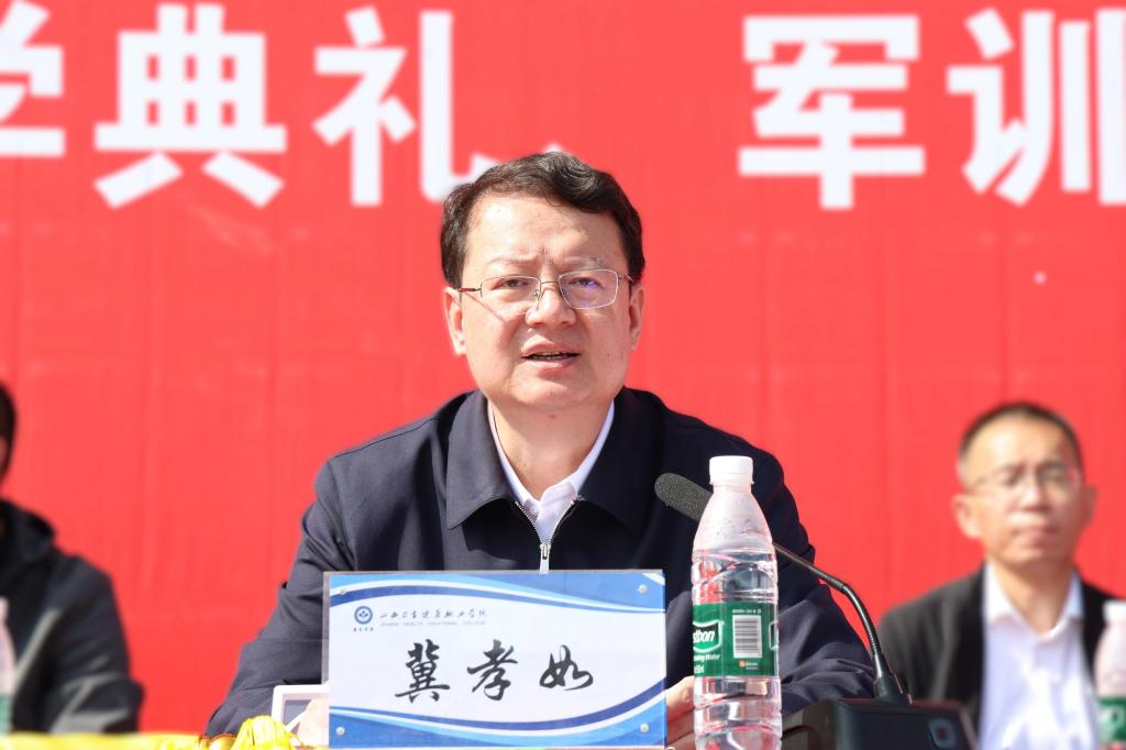 冀孝如指出,一代人有一代人的长征,一代人有一代人的使命。他向在场学生深刻解读“总体国家安全观”中卫生健康安全的重要性,引导新生正确认识“人民至上、生命健康至上”中的使命担当;希望广大学子精研医术、恪守医德,在健康中国建设中书写青春华章;号召广大学子以“白求恩奖章”获得者赵雪芳、王学诗、贺星龙三位优秀校友为榜样,深刻领悟“敬佑生命、救死扶伤、甘于奉献、大爱无疆”的职业精神,在学习中涵养家国情怀,锤炼过硬本领,用仁心仁术守护生命,用青春奋斗书写华章。