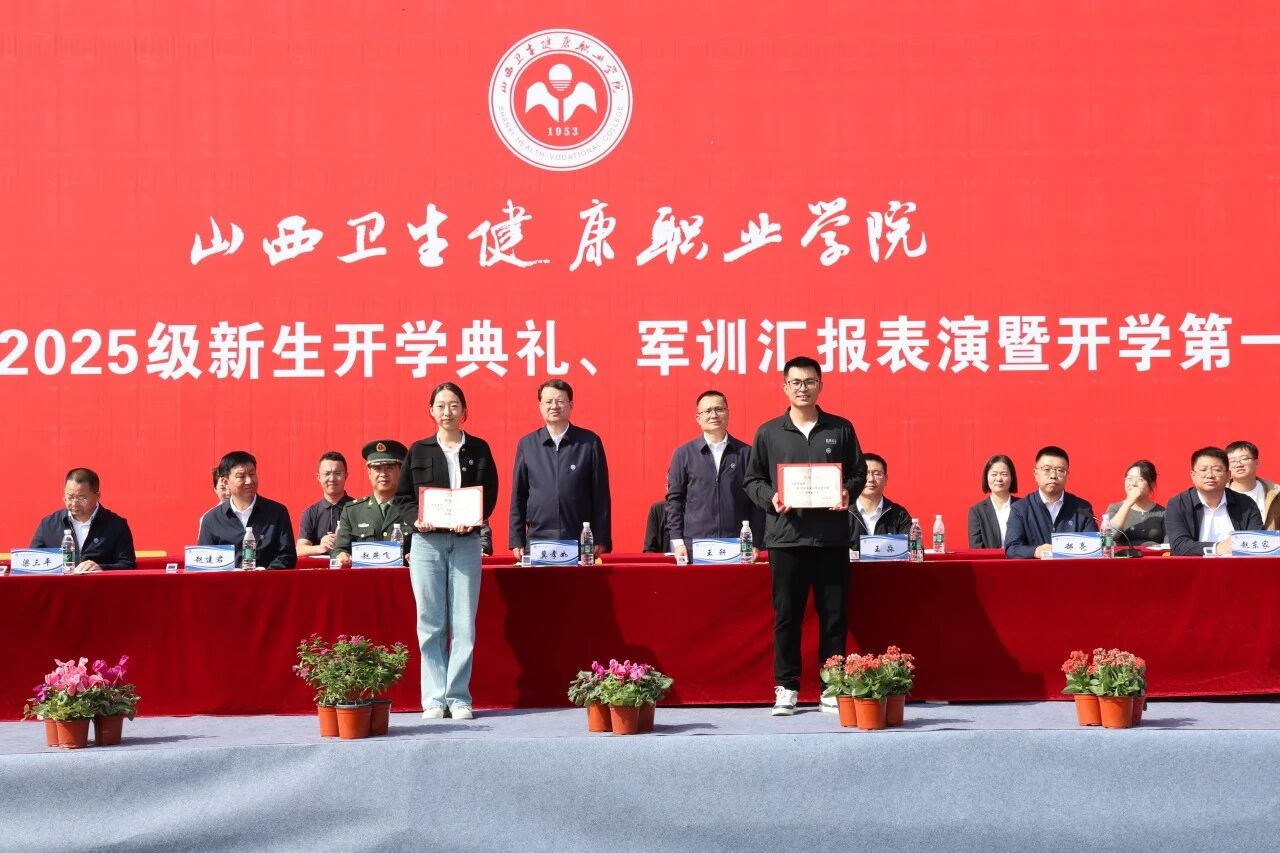 9月30日,康养学院2025级新生开学典礼、军训汇演暨开学第一课隆重举行。学院领导班子成员出席典礼,太谷区武装部军训总教官赵燕飞受邀出席。典礼由山西省中医学校副校长、康养学院负责人谭飞主持。