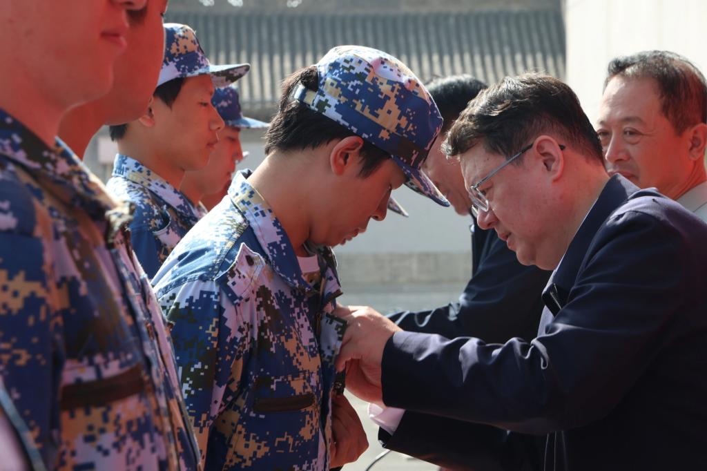 党委委员、副院长梁三平代表学院向太谷区武装部赠授锦旗,感谢部队官兵在军训期间的辛勤付出,为新生上好“入学第一课”。