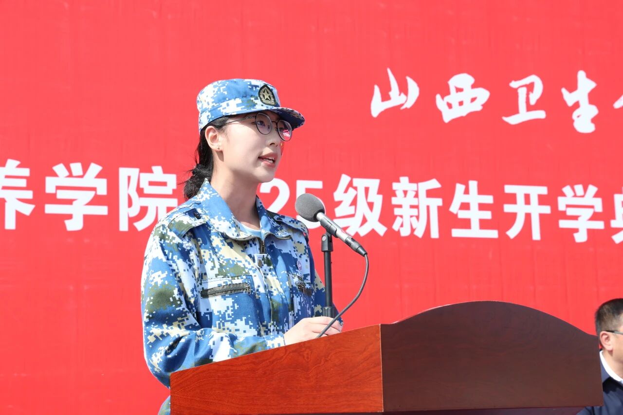 党委副书记、院长王轩发表讲话,从“立德、立志、勤学、力行”四个维度为新生指明方向。立德是立身之本,要以医德、品德涵养人生底色;立志需锚定人生长标,以优秀校友赵雪芳、王学诗、贺星龙为榜样,在医学领域深耕细作;勤学是大学生成长的必由之路,要在教室学理论、在实践学技能,让知识转化为服务健康事业的能力;力行则要践行“知行合一”,以王阳明的“知行之辨”为鉴,将理想信念转化为实际行动。他寄语新生,要在历史征途中明方向,在求学征途中强本领,在成长征途中塑人格,在时代征途中显担当,于卫健菁菁岁月里书写精彩的人生篇章。
