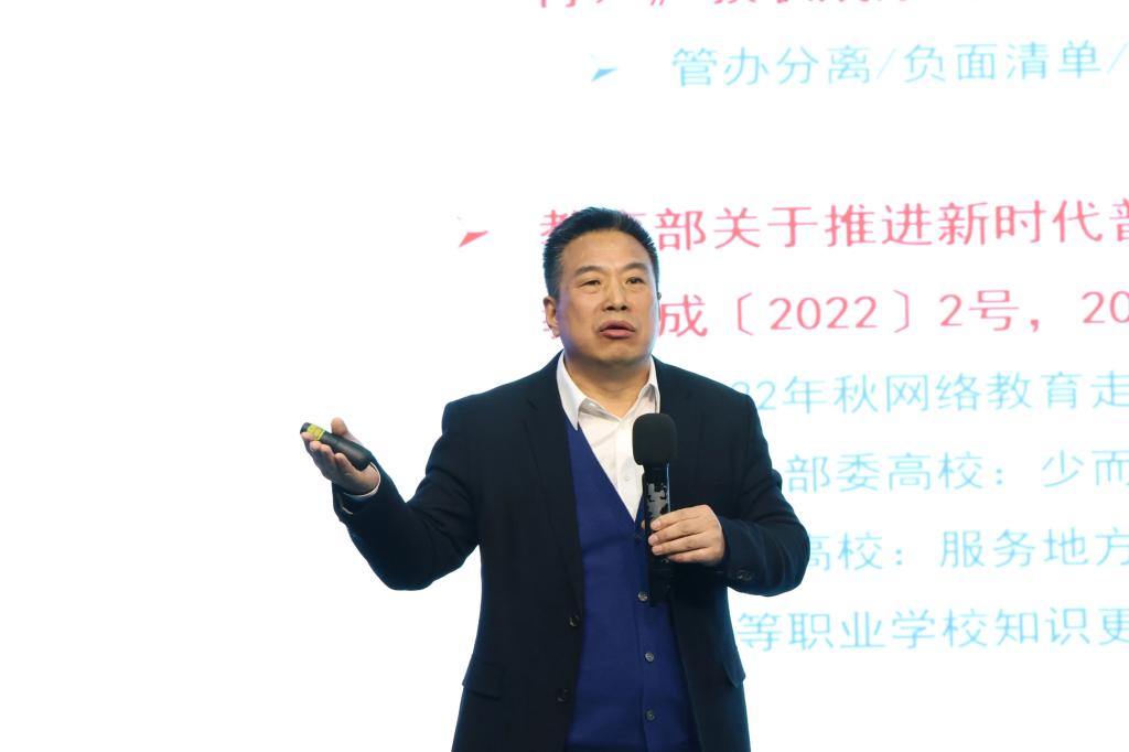 围绕会议主题,多位专家学者作了精彩报告。董刚以教育强国建设背景下高职院校社会服务能力提升的路径与实践为主题,强调职业教育要增强适应性、吸引力,培养更多高技能人才能工巧匠、大国工匠,从专业设置、专业群建设、职教出海等方面进行详细解读。张彦文从教育强国建设的内涵、职教发展核心趋势与挑战、卫生健康职业教育的新作为与新成效出发,阐释建设教育强国,卫生健康职教何为。王轩围绕政行企校协同、构建继续教育体系这一主题对继续医学教育政策、继续教育的路径与实践进行分享。上海交通大学医学院继续教育学院院长王福胜作题为《大健康行业三教协同的逻辑理路与实践机制探索》的报告。北京华医网科技股份有限公司董事长王昆作题为《基层卫生人员能力提升探索与实践》的报告。