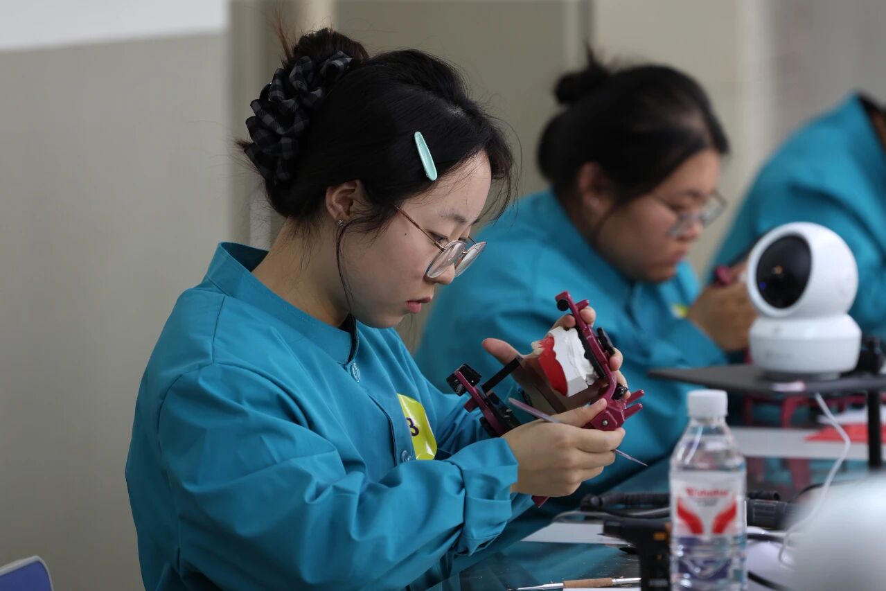 本次赛事共有3个赛项,其中,药学技能赛项聚焦处方调剂与用药指导、用药咨询等核心能力,中药传统技能赛项围绕药材形状和显微鉴别、中药炮制等传统技艺展开,口腔修复工艺赛项侧重数字化固定桥修复设计与牙体形态雕刻、全口义齿排列制作实操,全方位检验选手专业应用能力。全省10所高职院校的230名选手同台竞技,既考核选手专业理论功底,更注重实操技能与职业素养综合考评。赛场内,选手们沉着应战、精准操作,充分展现扎实的专业功底与严谨的职业态度;裁判团队严格遵循赛事规则开展评审,保障赛事权威性与公信力。